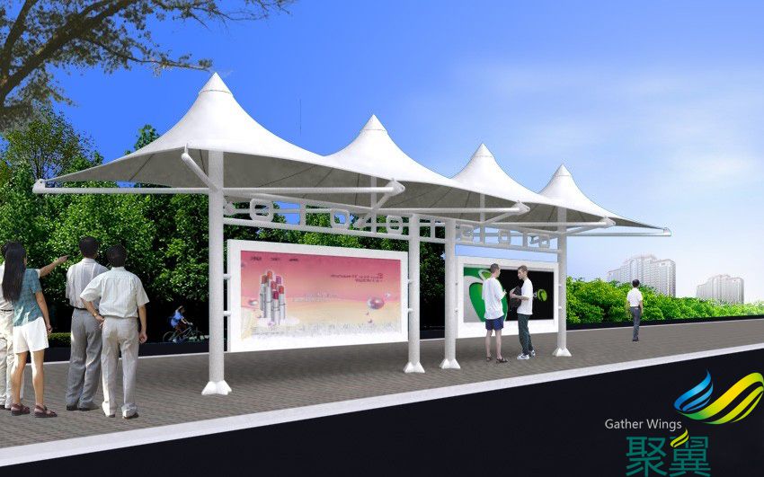 公交站候車廳膜結構候車廳遮陽篷設計及其他款式:
