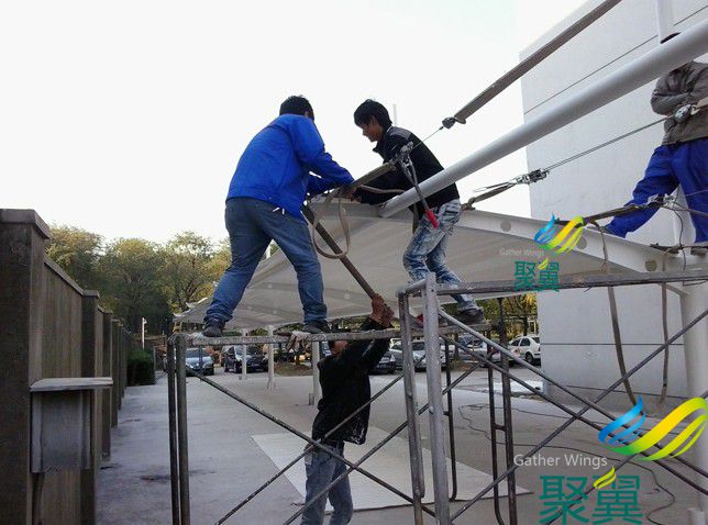 自行車棚作用:具有遮陽、擋雨、實用、美觀的作用。膜結構車棚可選材料:鋼材、鋼索、膜材料等。