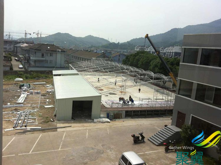 寧波泳池膜結(jié)構(gòu)于2014.6.10順利完工,露天泳池遮陽(yáng)膜結(jié)構(gòu)施工周期20天。防潮防濕,有效遮阻擋90%的紫外線。室外建設(shè)周期短,時(shí)尚美觀具有地標(biāo)性等特點(diǎn),耐用(膜布面料壽命8年以上)是建筑中的明星。