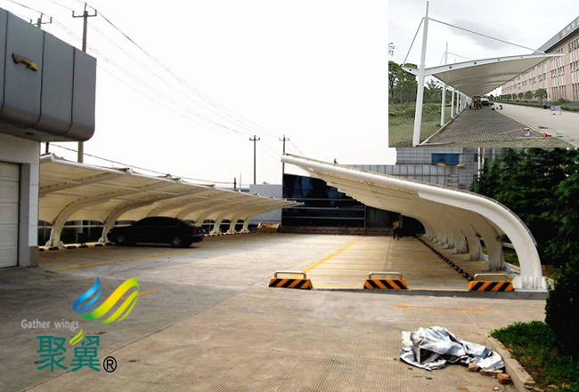 在進行膜結構車棚膜體輔設期間肯定要做好制品珍愛,不可損壞膜結構停車棚的膜面。膜結構車棚膜面支承結構之間不可以直接接觸,應當進行隔離。