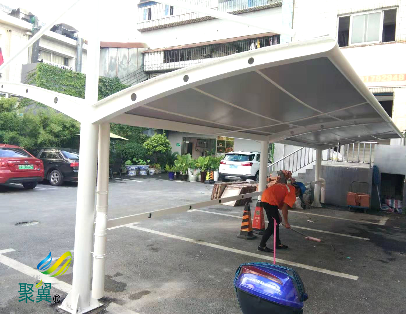 小區工廠電動車停車棚不同的材質車棚有不同的報價,影響學校車棚報價的因素有:1、平方大小 2、使用的年限差別  3、抗風等級不一樣  4.抗不抗積雪   5.面料材質不一樣,進口跟不進口區別。