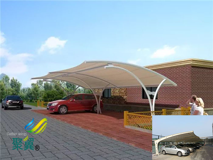 膜結構停車棚:這種停車棚的篷布材質主要是膜結構,而膜結構停車棚的較大特點是強度高,耐久性好,且具有良好的防火性和自然性,壽命也十分的漫長,因此這類的車棚應用的較為普遍,也較為被人所看好。