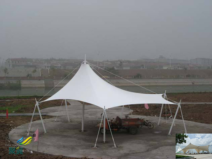 景觀汽車停車棚抗沖擊性:建筑膜才的沖擊強度是普通玻璃的250-300倍,是亞克力板材的20-30倍,是鋼化玻璃的2倍,幾乎沒有斷裂的危險性,有“不破玻璃”和“響鋼”之美稱.