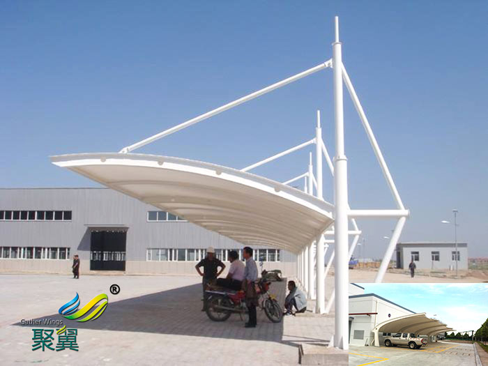 白天,陽光透過膜面使建筑物內(nèi)充滿夜自然漫射光。夜晚,室內(nèi)燈光透過膜面給空增添了夢幻般的夜景。當膜結(jié)構(gòu)用于體育館、娛樂設施時,工廠汽車停車棚可以實現(xiàn)全天內(nèi)的舒適相結(jié)合的理想的商業(yè)空間。