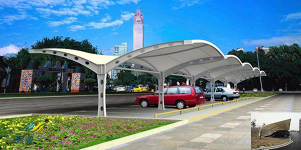 成為大跨度空間結(jié)構(gòu)的主要形式之一。停車場的規(guī)劃和建設(shè)成為現(xiàn)代城市規(guī)劃的重要組成部分,變的越來越重要。膜結(jié)構(gòu)輕巧、別致的造型在停車場及候車廳的建設(shè)中擔(dān)當(dāng)了重要角色,除了滿足防風(fēng)雨、防日曬等基本功能外,并有較好的標(biāo)識(shí)招攬效果,展現(xiàn)了人們個(gè)性化的一面。