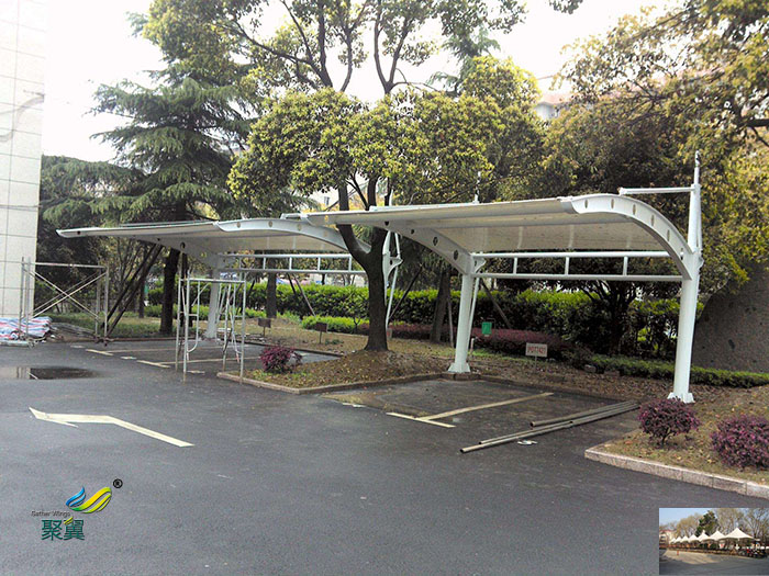 可減少現場施工時間,避免出現施工交叉。與傳統建筑方式相比,膜結構車棚的施工周期至少可縮短一半,膜結構車棚的一切設計,加工,制作都可以在工廠完成。