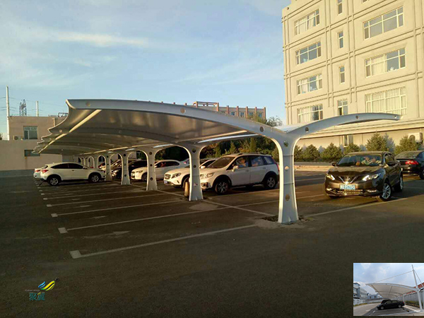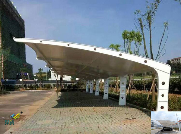 膜結(jié)構(gòu)車棚的篷布材質(zhì)是膜結(jié)構(gòu),而膜材的最大特點(diǎn)是強(qiáng)度高、耐久性好、防火難燃、自潔性好,不受紫外線影響,使用壽命長(zhǎng),一般15-30年。具有高透光率,透光率為13%,對(duì)熱能反射率73%,熱吸收量很少。正是因?yàn)檫@種劃時(shí)代的膜材料的發(fā)明,使膜結(jié)構(gòu)車棚成為現(xiàn)代化的永久建筑。鑒與此,膜結(jié)構(gòu)造型的停車棚在停車場(chǎng)建設(shè)中也以其優(yōu)美的造型和實(shí)在的功能擔(dān)當(dāng)重要角色,是您的愛(ài)車最佳安身之所。