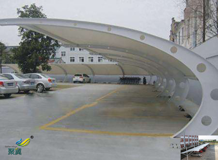 停車場的規劃和建設成為現代城市規劃的重要組成部分,變的越來越重要。膜結構輕巧、別致的造型在停車場及候車廳的建設中擔當了重要角色,除了滿足防風雨、防日曬等基本功能外,并有較好的標識招攬效果,展現了人們個性化的一面。
