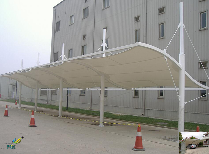 車棚是一種預應力空間整體結構,將結構與建筑圍合部分結為一體,最大限度的發揮了膜材料的承載能力,創造出一種具有自然形態美的外觀,既飄逸又剛勁有力。膜材對光反射高吸收低,且熱傳導性較低,這極大程度上阻止紫外線進入室內。另外,膜材料的半透明性保證了適當的漫射光照明室內,進行自然采光,節約運營中的能源消耗,但嚴寒地區宜進行必要的保溫設計。車棚奇特的造型和夜景效果有明顯的建筑可識性和商業效應。膜結構車棚的膜材、鋼結構支承系統均可在工廠內制作,現場安裝,便于工業化,縮短施工工期,具有良好的經濟性。相比傳統的停車棚,膜結構車棚具有自潔性好、大跨度、造型美觀、施工周期短、體量輕等優點,目前已經得到廣泛應用。