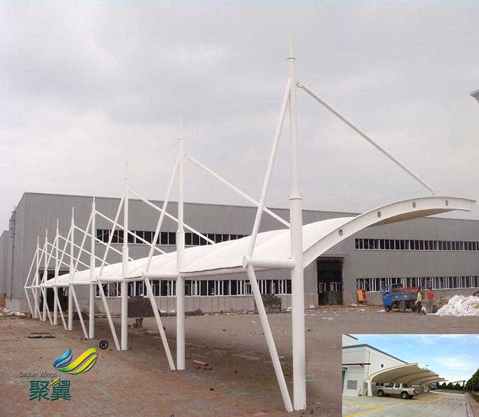 2、膜結構車棚耐候性:表面有防紫外線的共擠層,可防止太陽紫外線引起的樹脂疲勞變黃。表面共擠層具有化學芻吸收紫外線并轉化為可見光。對植物光合作用有良好的穩定效果(極適合保護各類車、貴重藝術及展品,使其不受紫外線破壞)。