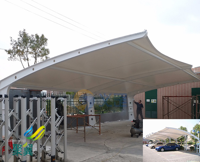 4.質量好。膜結構汽車停車棚材料屬于高強度工程材料,一般需要高水平的技術才能完成,除了其結構強度的整體重量比較輕外,在極其惡劣的天氣也不用擔心被摧垮損壞車輛。