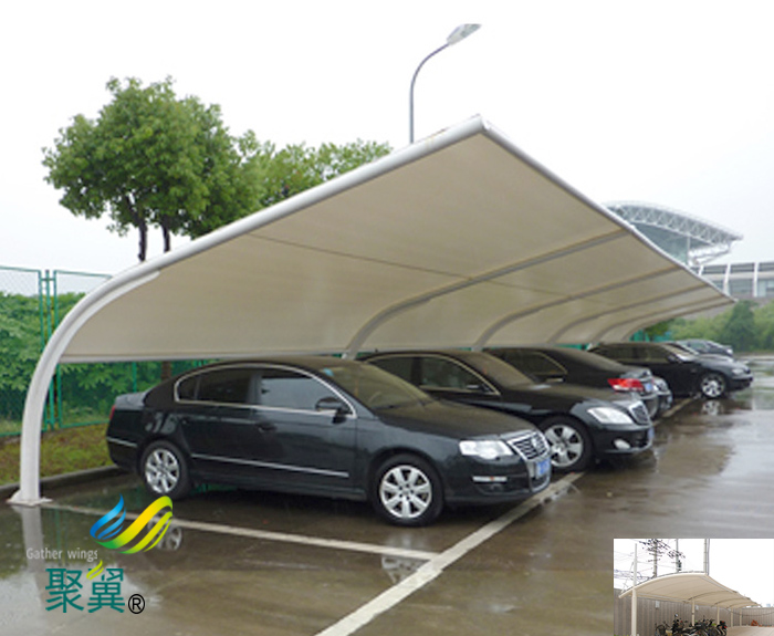 學校車棚耐用:由于高強度的膜材出現,再加上張拉技術的應用,使膜結構車棚抵御風雨的能力是一般雨蓬之類不可比擬的。有的車棚采用永久性膜材,可使用三、四十年。特別是遇到劇烈的暴風雨天氣,膜結構建筑巍然不動,毫發不損。