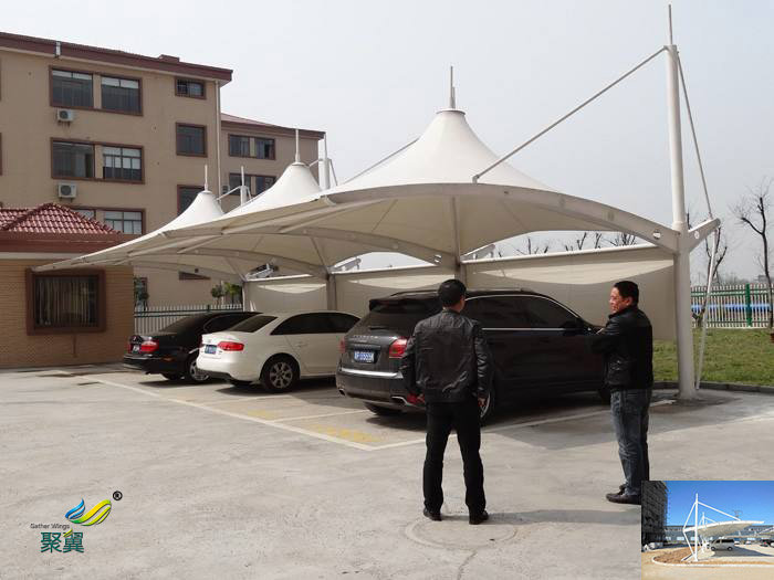 除此以外,現代構造優質的汽車停車棚具有良好的透光性以至于膜結構建筑在陽光下曝曬不會產生黃變、霧化以及透光不佳的效果。不僅僅如此,良好的汽車停車棚的構造材質較輕,而且其隔音效果好。因此,膜結構汽車停車棚是人們的最佳抉擇。