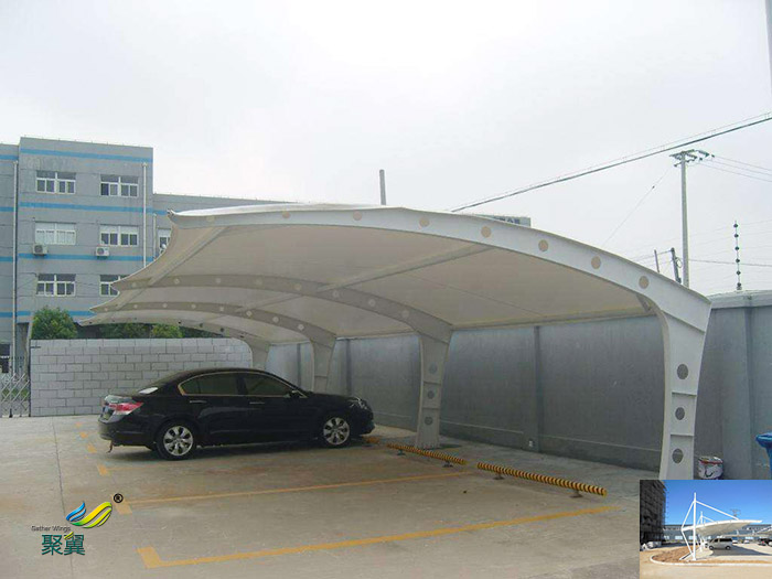 膜結(jié)構(gòu)停車(chē)棚表面上風(fēng)也是膜結(jié)構(gòu)景觀建筑受到青睞的緣故原由之一:目前膜結(jié)構(gòu)景觀建筑的最大跨度已超過(guò)200米,造型獨(dú)特, 新鮮美觀, 色彩雄厚, 別具一格,便于移動(dòng)搬遷或更新改造;膜材料外觀的自潔性高,外觀與太陽(yáng)天然光照越來(lái)越白,且清潔方便。