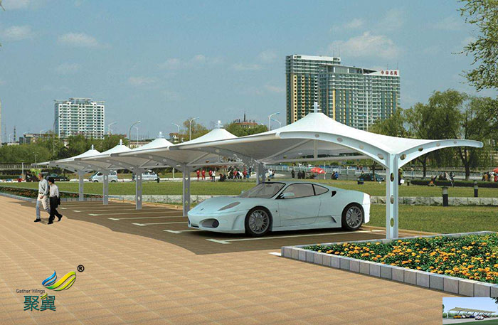 2.膜結構定制停車車棚空間跨度大—空間跨度大,重量輕,膜結構停車棚會保證棚下人和物的安全。