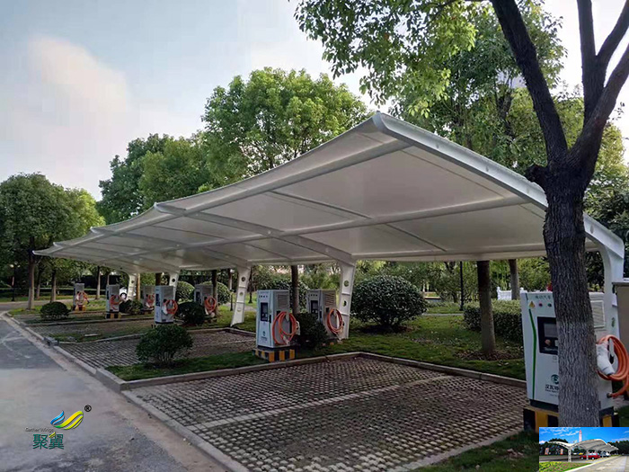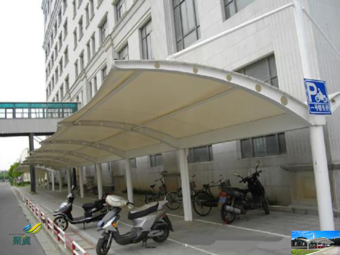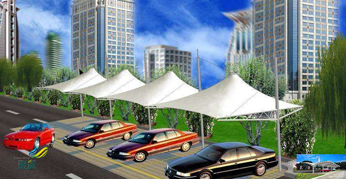 膜結構車棚一改傳統建筑材料而使用膜材,其重量只是傳統建筑的三分之一,而且膜結構車棚可以從根本上克服傳統大跨度建筑上所遇到的困難,可創造巨大的無遮擋的可視空間。膜結構車棚特點是強度高、耐久性好、防火難燃、透光性好、自潔性好,跨度可以超過兩百米,不受紫外線影響,使用壽命長,一般15-30年。