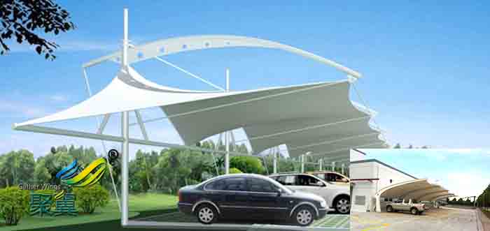 2、膜結構停車棚耐用性:由于高強度鋁合金材料,使鋁合金停車棚抵御風雨的能力是一般雨蓬之類不可比擬的。特別是遇到劇烈的暴風雨天氣,鋁合金停車棚建筑巍然不動,毫發不損。可使用15年左右時間。