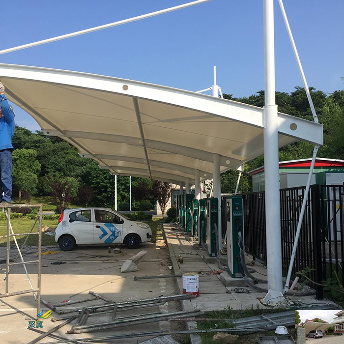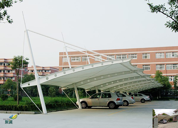 昆山索膜結構別墅停車棚加工施工制作圖片