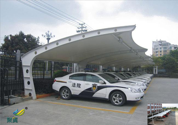 2.膜結構車棚自清潔光傳輸:建筑物膜其通常使用的,穩定的物理性能和特別好的PVDF材料涂層具有自清潔效果的外觀,雨水可以通過本身在通常的膜塵條件洗滌,建筑物使用壽命得到保證。