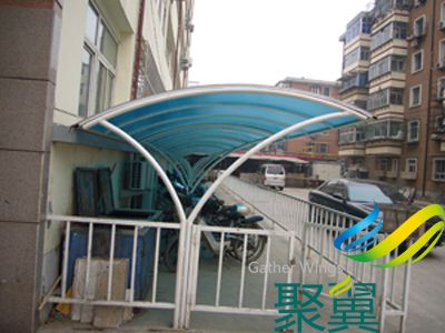 陽光板車棚的篷布材質是陽光板,而陽光板具有透明度高、質輕、抗沖擊、隔音、隔熱、難燃、抗老化等特點,是一種高科技、綜合性能極其
