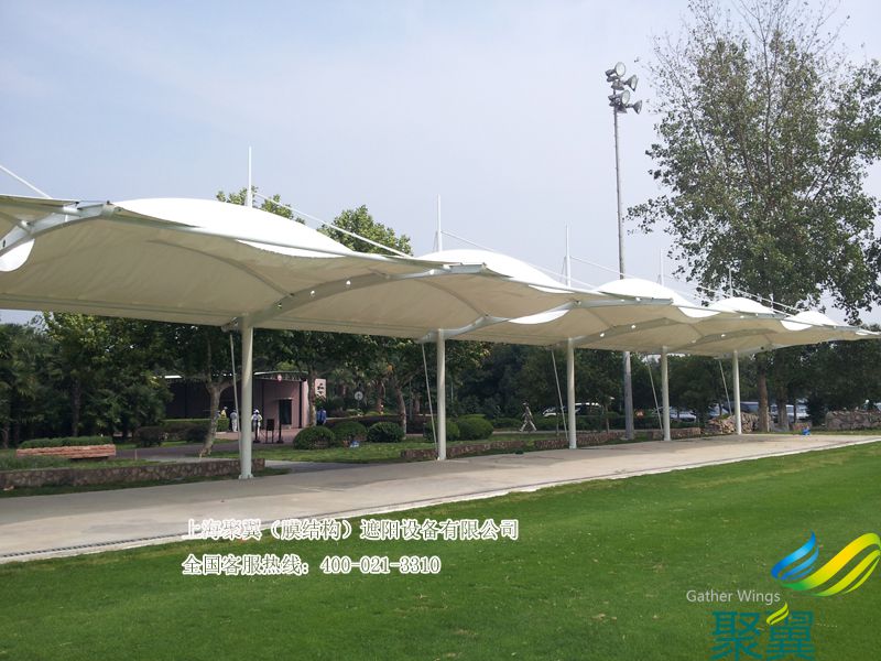 詳細>>上海市楊浦區國順東路網球場鋼膜結構遮陽篷。網球場、籃球場...