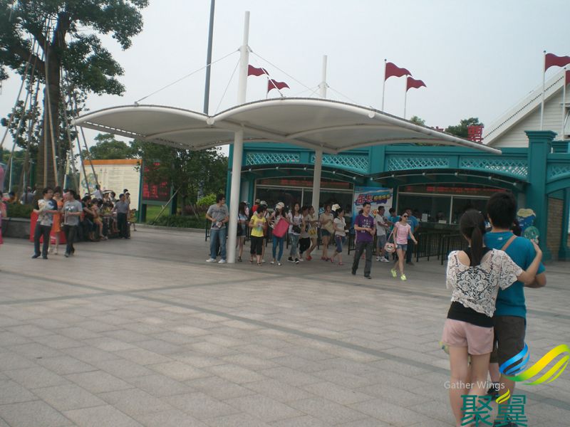 詳細>>歡樂谷游樂場售票處遮陽膜結構,膜結構遮陽雨棚收費處