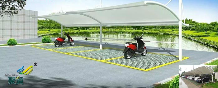 詳細>>太倉定制景觀膜結構自行車停車棚特點效果圖報價單cad圖紙