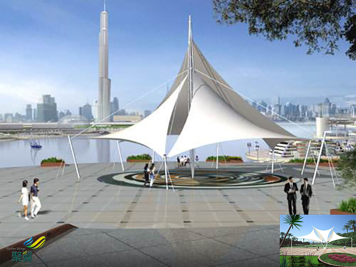 詳細>>深圳膜結構張拉膜傘景觀棚、景觀小品材料施工設計效果圖