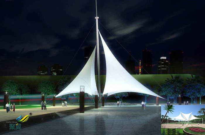 詳細>>張拉膜結構膜傘、景觀小品施工方案