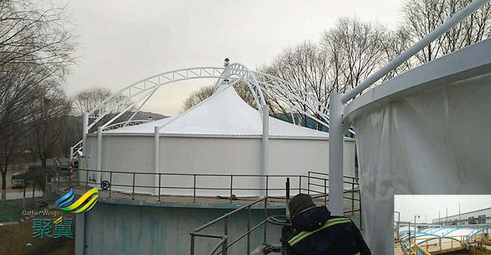 詳細>>天津膜結構沼氣、反吊式污水池加蓋膜結構設備