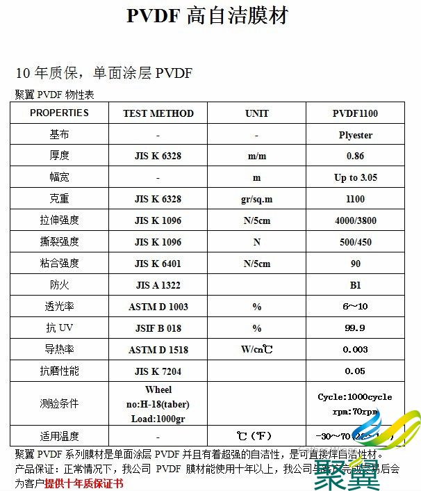 詳細>>進口技術中國自主生產PVDF膜布材料其表面無靜電,對灰塵沒有吸附力,長期用于室外浮灰可利用自然...