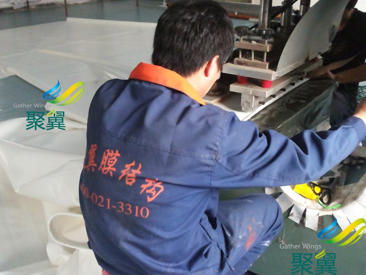 詳細(xì)>>聚翼遮陽(yáng)膜布批發(fā)月銷量達(dá)20000平米,膜布加工平方數(shù)量達(dá)到35000平米是上海市最大的膜布批發(fā)加工...