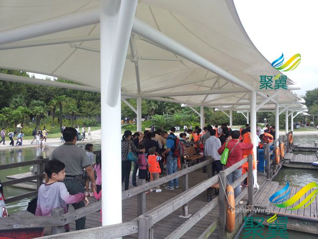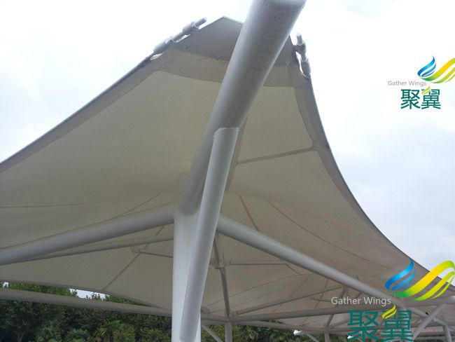 景觀膜結(jié)構(gòu)尺寸:立柱間距 X 6m 懸挑長(zhǎng)度 Y 5m 外檐高度 H 2.6m 投影面積 I 39㎡ 景觀膜結(jié)構(gòu)適用于:體育設(shè)施、交通設(shè)施、文化設(shè)施、商業(yè)設(shè)施、建筑設(shè)施、景觀設(shè)施、室內(nèi)裝璜等。 單邊立柱汽車頂棚參數(shù): 1、 鋼材選用:Q235熱鍍鋅高強(qiáng)度優(yōu)質(zhì)鋼材,拋丸防銹處理,表面噴漆,熱鍍鋅螺栓;鋼構(gòu)工藝流程包含基層處理—涂防銹漆—刮膩?zhàn)?mdash;涂磷化底漆等。 2、面積部分采用:希運(yùn)PVP膜材(白色),精度裁剪焊接定型等膜布加工處理;成品檢驗(yàn)后轉(zhuǎn)發(fā)安裝部門。 3、此產(chǎn)品整體質(zhì)保期為1年,希運(yùn)膜布質(zhì)保15年。 上海聚翼遮陽(yáng)設(shè)備有限公司-集生產(chǎn)、銷售、設(shè)計(jì)、制作安裝服務(wù)于一體的專業(yè)化公司.公司主營(yíng)各種類型聚翼棚業(yè)系列:車棚、汽車車棚、自行車車棚、別墅車棚、鋼結(jié)構(gòu)車棚、膜結(jié)構(gòu)車棚、陽(yáng)光板車棚 、汽車雨棚及各類風(fēng)格的陽(yáng)光房,窗棚,露臺(tái)棚,等。其特點(diǎn):耐腐蝕、防老化、堅(jiān)固耐用、安全性好、防噪音、不滲水、抗風(fēng)壓能力強(qiáng),易保養(yǎng)等特點(diǎn)。
