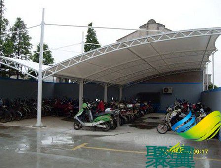 膜結構自行車棚找上海聚翼,德國進口材質,值得信賴!高,中,低檔為您量身設計!自行車棚面料質感好,使用壽命長久耐用。骨架可根據設計與環境的因素改進達到最佳方案,是一般其他車棚無法實現的。自行車棚采用膜材作為面料在設計上就能充分利用膜材的輕、柔、薄、透光性好等特點,來實現各種不同造型的遮陽效果!