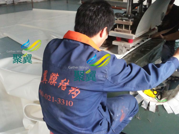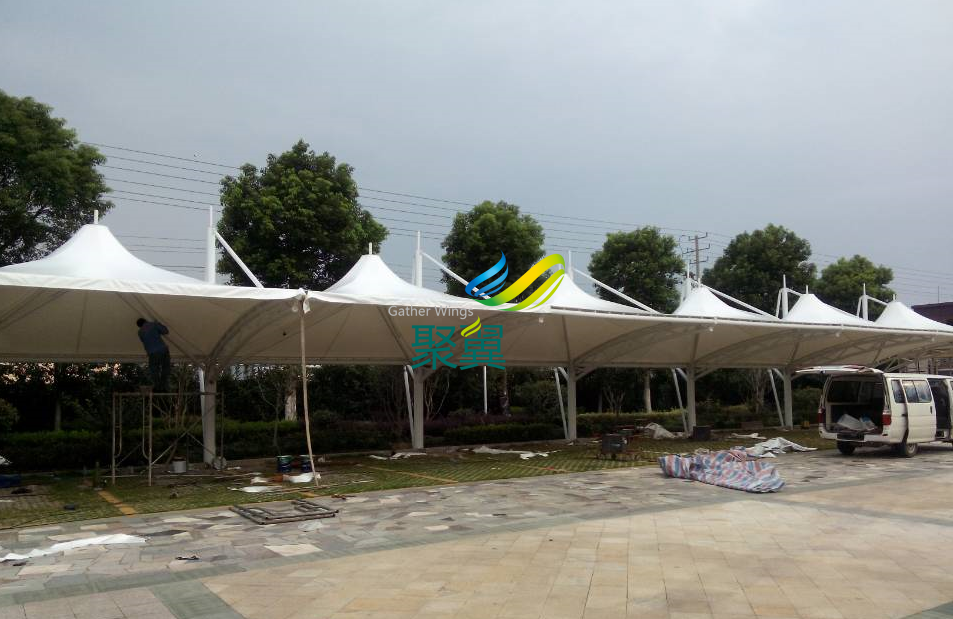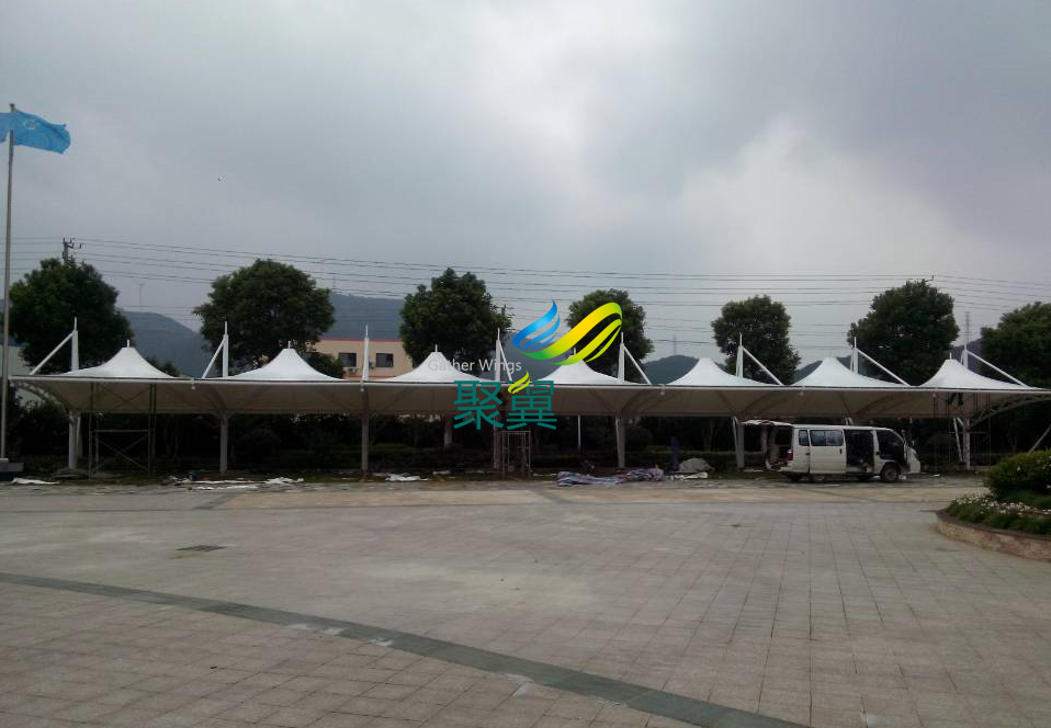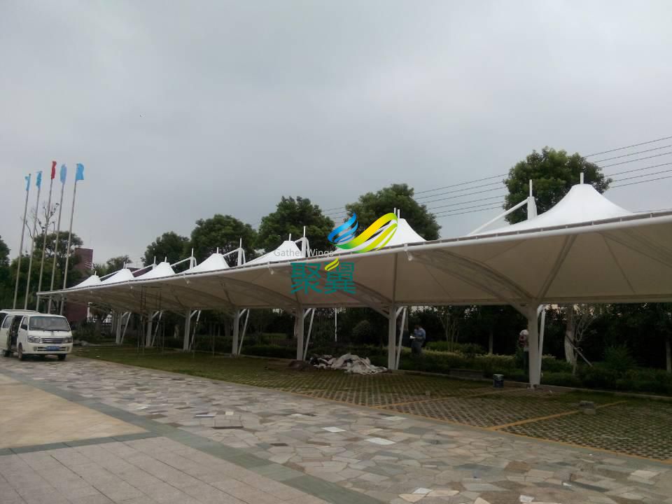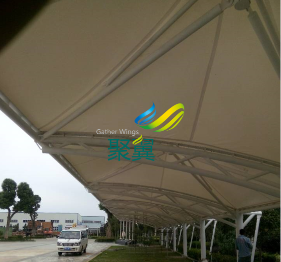 浙江舟山市港航船舶機械有限公司冒頂膜結構車棚面料質感好,冒頂膜結構車棚面料采用國產PVDF1100g 車棚專用面料,防霉菌性和高耐磨性超強,壽命長達8年以上 。