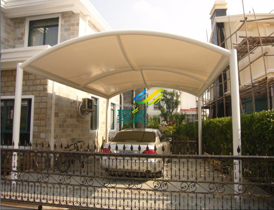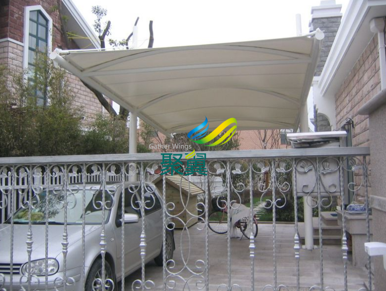 上海聚翼別墅車棚冬季價格優惠,別墅車棚設計精致高雅耐用。車棚防雨防雪,質最保證,價格合理,骨架采用Q235鋼材精加工而成,骨架的表面采用環氧富鋅底漆橡膠面漆。頂部材料采用進口PVDF膜材料,PVDF膜材料自潔性較好,張拉力3800N-4000N以上(使用壽命5-8年)。 膜材料可以防止陽光中的紫外線,與別墅花園配套。