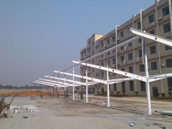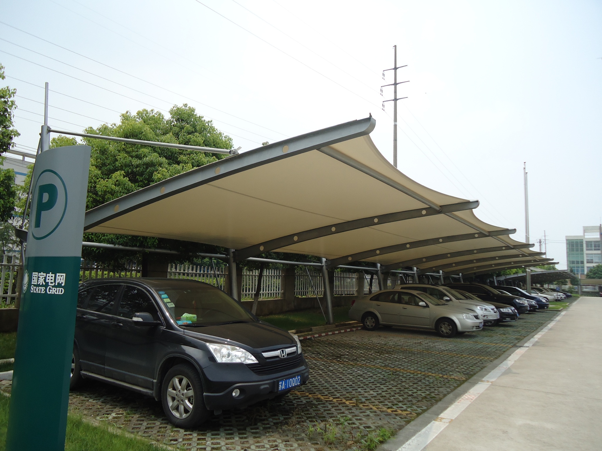 3.膜結構車棚價格稍微高些,但在使用時間上膜結構車棚長達10-25年!采用膜材作為面料在設計上就能充分利用膜材的輕、柔、薄、透光性好等特點,來實現各種不同造型的遮陽效果!