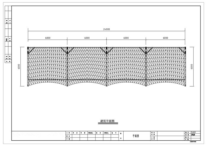 JY-100T停車棚主體采用q235鋼料,鋼結構專用底面油漆。進口膜布面料,每平方米用鋼量為20,抗沖擊性強,張力強等特點。 1.停車棚CAD圖: