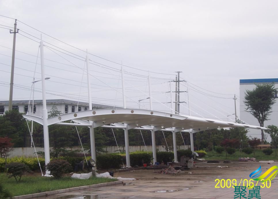汽車遮陽棚骨架,表面處理采用進口船用底漆,炳烯酸聚氨酯面漆藝術性:除了一般遮陽棚不可比擬的實用、耐用、遮風擋雨的功能外,膜結構汽車遮陽棚更是一座雕塑,一件藝術品,給人美的視覺享受。讓人眼前一亮,回味悠長。 長期露天停放的車輛,性能損耗速度比車棚內停放車輛快一倍。 而采用膜結構汽車遮陽棚能有效阻擋紫外線對汽車表面的損害,保護車輛,減緩汽車老化速度。 其他車棚款式與膜結構汽車遮陽棚對分析:可參考《聚翼資訊 \ 車棚款式對比_各種車棚結構》 膜結構汽車遮陽棚抗沖擊性:建筑膜才的沖擊強度是普通玻璃的250-300倍,是亞克力的板材的20-30倍,是鋼化玻璃的2倍,幾乎沒有斷裂的危險性,有“不破玻璃”和“響鋼”之美稱。 阻燃性:據國家GB8624-97測試屬阻燃B1級,無火滴,無毒氣。 膜結構汽車遮陽棚耐溫性:在攝氏族-40.C至+120.C溫度范圍內不會引起變形等品質劣化。 膜結構汽車遮陽棚為什么選擇聚翼?服務的六個理由:誠信---遵合同.守信用.絕不弄虛作假,實廠(檢江區洞涇鎮西張涇路16號)、實人(王杰13917686158)、實事(松江工業園區廠區車棚、南京棲霞區發電廠區車棚等可到案例現場參觀),有營業執照,具備較強的設計、加工、施工能力; 1、膜結構汽車遮陽棚定制開始---從膜結構設計方案圖、施工圖,膜結構加工制作及安裝,鋼結構加工制作及安裝,后期跟蹤維護等一套專業化的服務,一切只為客戶滿意; 2、膜結構汽車遮陽棚質量把關---強大的設計實力,使用國際上先進的膜結構軟件-FORTEN4000和3d3s 10.1進行計算.裁剪等保證工程的可靠性和合理性,加上優質材料的選用;嚴緊的施工團隊確保質量達到行業領先標準;驗收、后期維護指定客服代表專人負責。 3、膜結構汽車遮陽棚價格優勢---廠家直供,環節減少了,能最大限度的返利于客戶;完全能做到質優價低。 工期---,現場施工經理緊密組織,熟練施工團隊默契合作。保質保量確保工程優良的前提下小型項目10日內完工、中型項目15日內完工。 4、膜結構汽車遮陽棚售后保障---工程完工后,由專業售后服務人員定期電話回訪,定期到現場對膜材表面進行清潔保養。 聚翼汽車遮陽棚——地址:上海市松江區洞涇鎮西張涇路16號,沈海高速莘G15方向四涇鎮出口,近莘磚公路磚橋貿易城。主頁: http://www.lqbsjx.com 全國24小時客戶電話:400-021-3310
