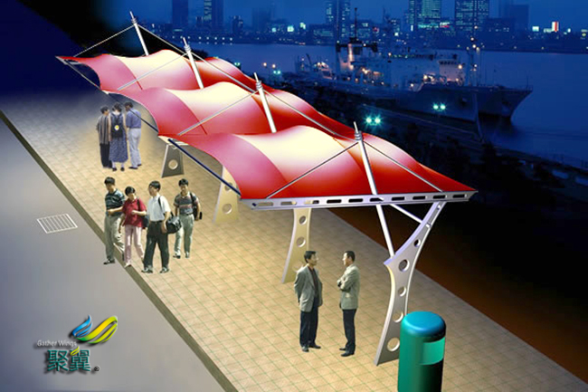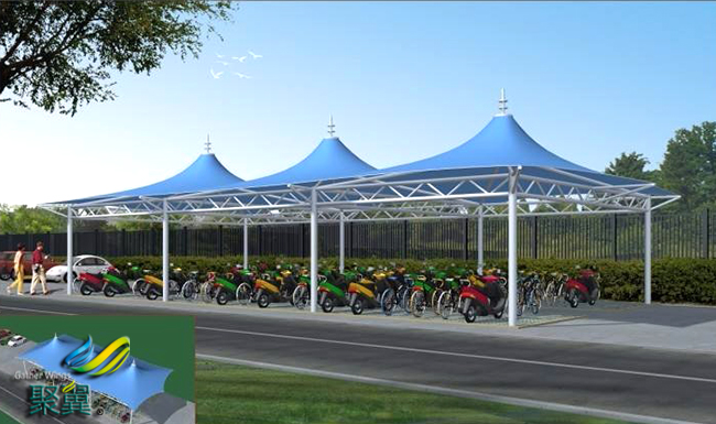 膜結構車棚與景觀融為一體。發明可以提供各種用途的膜結構車棚。豐富的膜結構構件的藝術之美表現出明顯的力量,對周圍環境的巧妙融合,給人一種優雅,浪漫和溫暖的感覺。