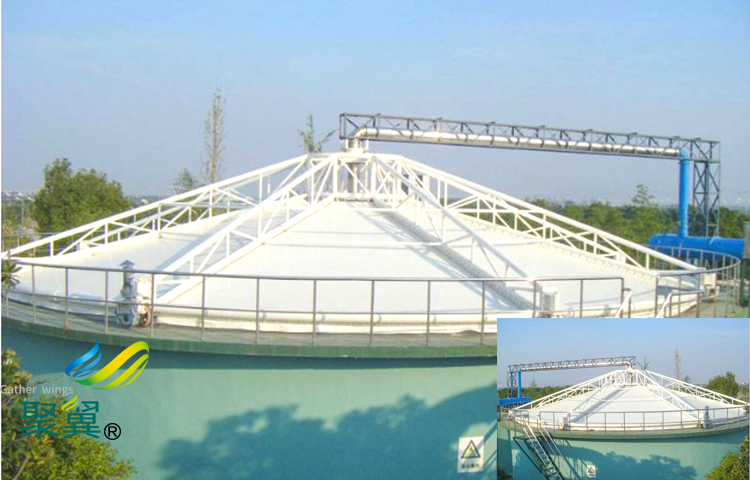 骨架式膜結構也叫鋼架反吊膜,鋼構反吊膜,主要采用了抗腐蝕能力很強的膜材把廢氣罩住,鋼結構在外面將膜懸吊。膜層中還有高強度低砂低紗聚酯絲及優質pvc涂層和UV光固化處理,這樣既發揮了膜材的抗腐蝕性能,又從根本上解決了鋼結構由于與腐蝕性氣體接觸而帶來的腐蝕問題。