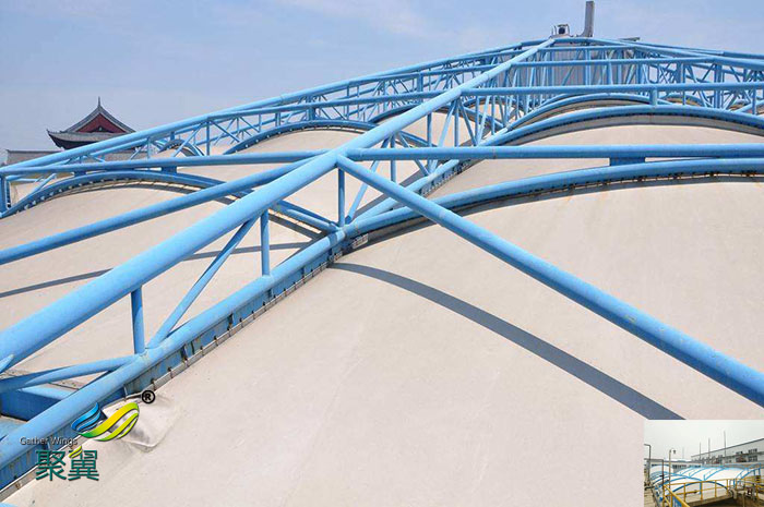 2、膜自身防腐性能好,自重輕,對大跨度池體最具優勢,造型多樣,美觀新穎;
