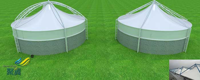 2、防腐效果好,由于膜材料結(jié)構(gòu)建筑的特殊性,可將鋼架設(shè)在外面,只有膜材料結(jié)構(gòu)接觸污水池,基本解決腐蝕問題,而且將來也不用考慮保養(yǎng)問題。