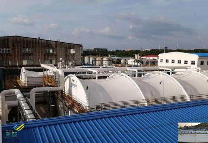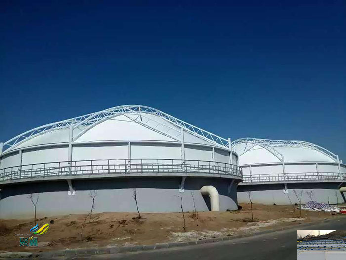 2.污水池加蓋優質的PVC涂層;改變了傳統涂層材料的表面特性,具有優良的抗污染能力,能長久保持清潔干凈,這樣,不僅增強了膜材的抗氧化性,而且延長了膜材的使用壽命。