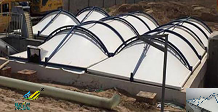 2.污水池加蓋優質的PVC涂層;改變了傳統涂層材料的表面特性,具有優良的抗污染能力,能長久保持清潔干凈,這樣,不僅增強了膜材的抗氧化性,而且延長了膜材的使用壽命;