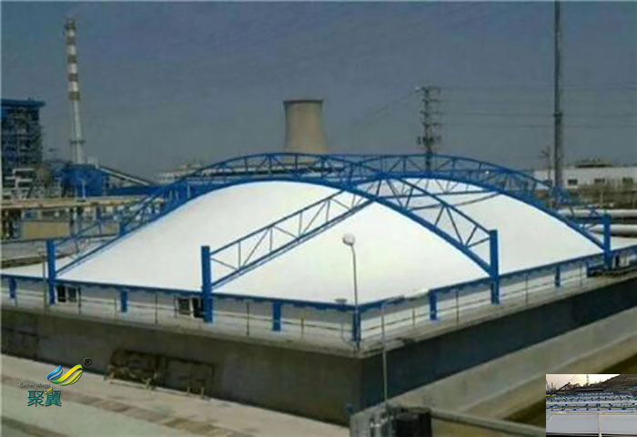 1.密封性能好;污水池加蓋的膜材具有抗拉性能強,密封性好的特點,可以將廢氣密封在一個密閉的空間,阻止廢氣與空氣的接觸,從而造成二次污染。