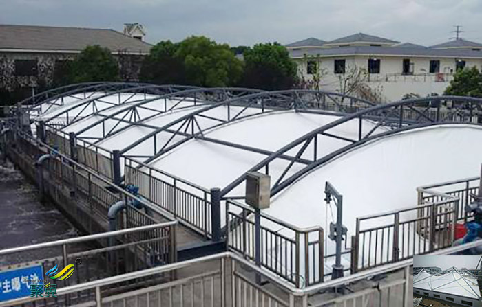 1.密封性能好;污水池加蓋的膜材具有抗拉性能強,密封性好的特點,可以將廢氣密封在一個密閉的空間,阻止廢氣與空氣的接觸,從而造成二次污染。