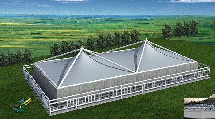 1.密封性能好;污水池加蓋的膜材具有抗拉性能強(qiáng),密封性好的特點(diǎn),可以將廢氣密封在一個(gè)密閉的空間,阻止廢氣與空氣的接觸,從而造成二次污染。