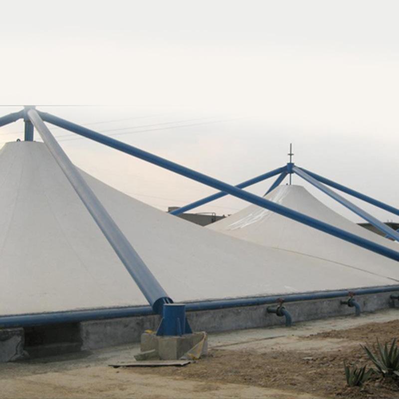 1.密封性能好;污水池加蓋的膜材具有抗拉性能強,密封性好的特點,可以將廢氣密封在一個密閉的空間,阻止廢氣與空氣的接觸,從而造成二次污染。