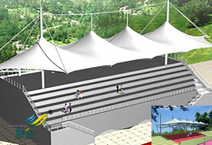 隨著膜結構的運用越來越廣泛,在膜結構建筑中又出現了一種膜結構體育看臺,膜結構體育看臺占地面積小,設計獨特,造型優美,透光性好,受到了越來越多人對的青睞。膜結構體育場看臺的安裝不能在風力超過四級的時候進行。同時在安裝過程中為了避免顫動現象的發生,要時刻注意風向和風速。